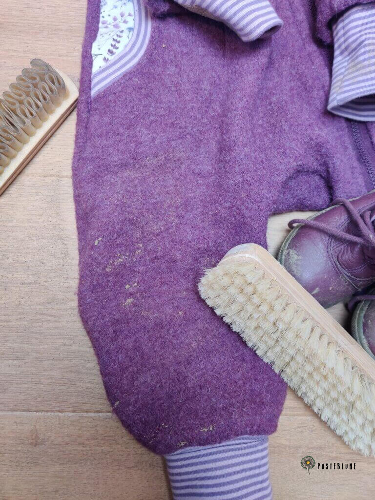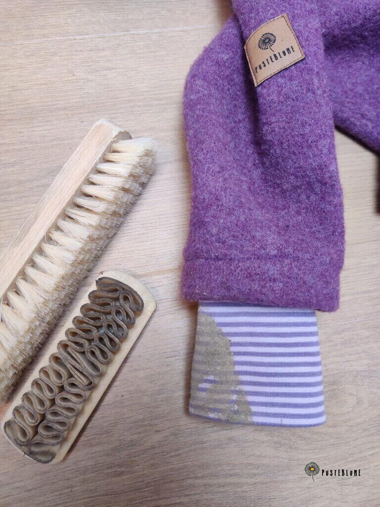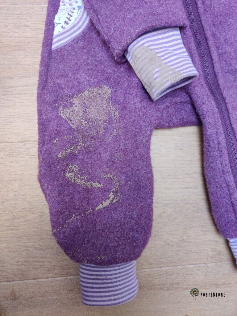 Meine Empfehlung ist hier ein Fusselrasierer! Wer noch keinen hat; diese ca. 15 € sollte man investieren. Kleidung wie Mäntel, Bündchen an verschiedenen Kleidungsstücken und eben gerade auch (Kinder-)Kleidung aus Wollwalk sehen dadurch wieder viel neuwertiger aus.
