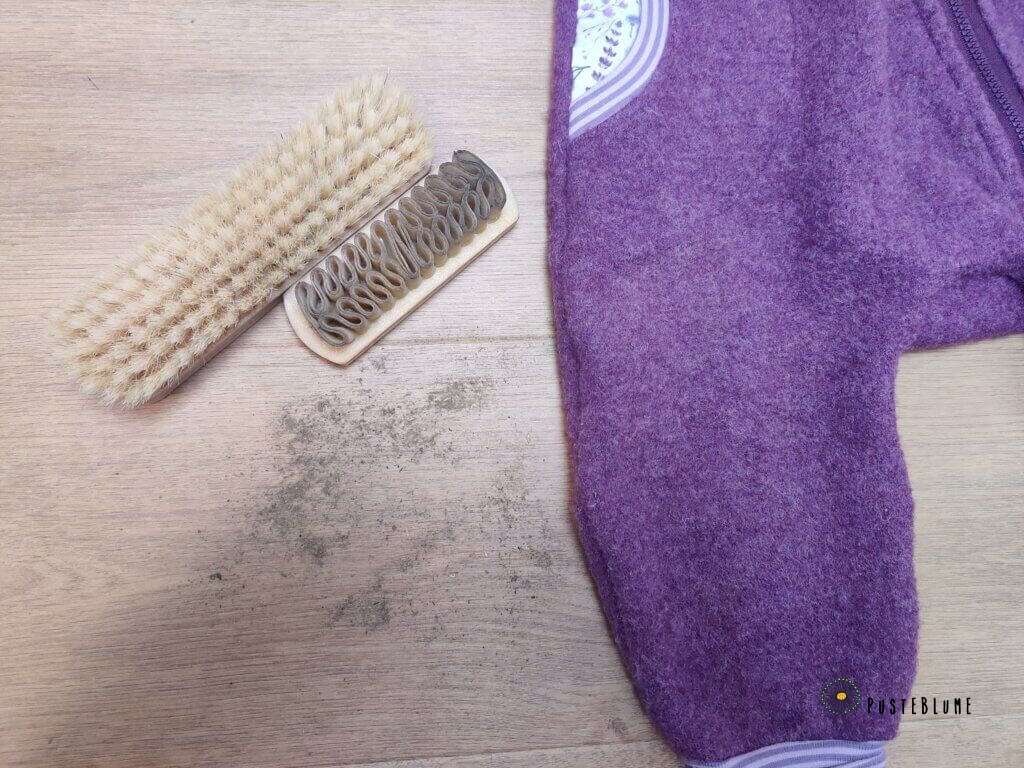 Verschmutzungen am Wollwalk können im getrockneten Zustand gut und leicht abgebürstet und/oder ausgeschüttelt werden. Riecht er, kann man ihn auch gut auslüften.