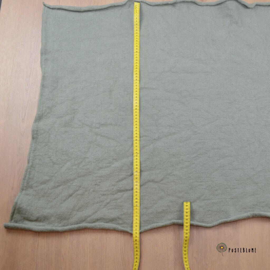 Mein Tipp: Entweder ihr spart euch das Vorwaschen, wenn ihr die vernähten Kleidungsstücke nie waschen wollt, oder ihr wäscht das Wollfleece im Vorhinein im Wollwaschprogramm, kalt, ohne Schleudern und Feinwaschittel vor. Dabei müsst ihr eben die Reduktion in der Länge um 15% einkalkulieren.